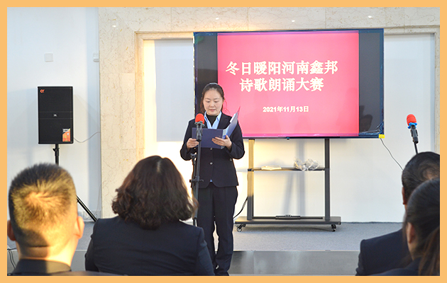 2021年11月13日,伴随着冬日温暖的阳光,河南鑫邦人力资源服务有限公司在公司六楼会议室举行了冬日暖阳诗歌朗诵比赛活动。活动旨在进一步增强团队凝聚力、弘扬鑫邦企业文化、丰富员工业余生活。