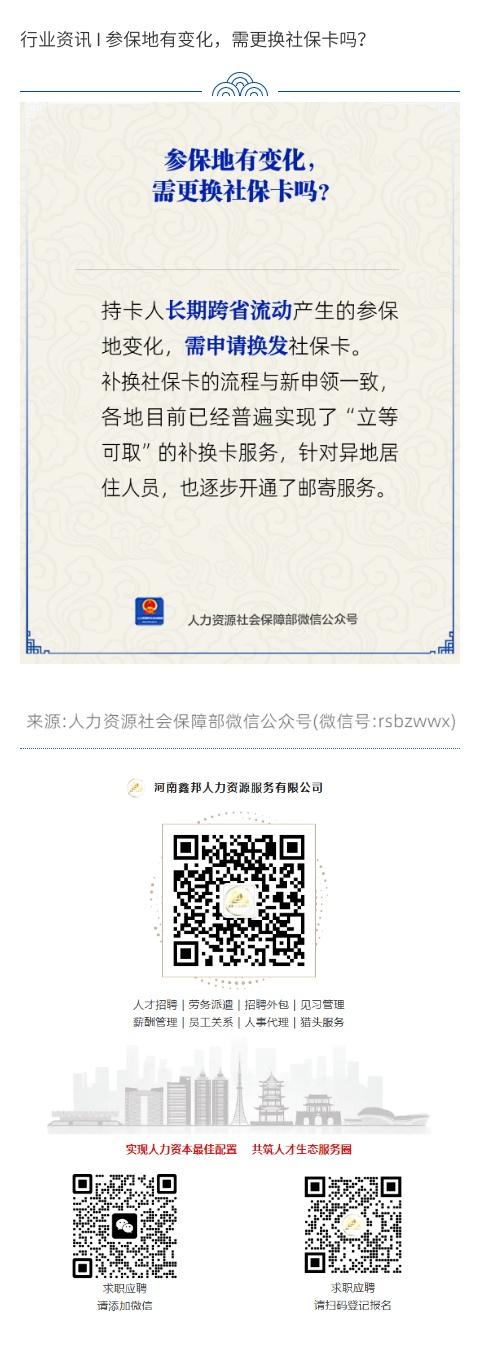 行业资讯 I 参保地有变化,需更换社保卡吗?